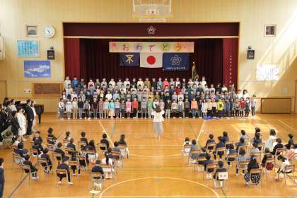 そんな時、新1年生が困らないように近くで寄り添ってサポートしていた大空のリーダー(6年生)、大空小学校のことを歌や演奏を交えながら紹介する2・3年生、大空の子どもたちを優しく見守る地域のみなさん、サポーターのみなさん、ゲストのみなさん、そして教職員が新1年生と一緒になって入学式をつくりました。