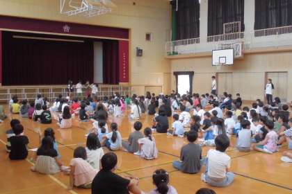 今日は集会委員会によるクイズ集会で、大空小学校についてのクイズが出ました。