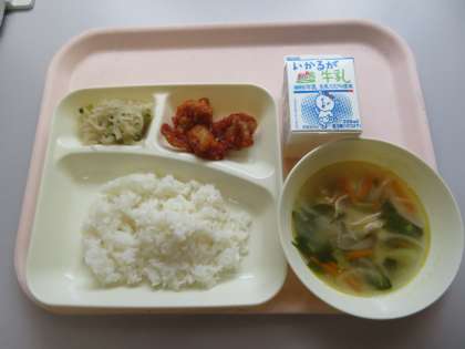 ・ごはん ・牛乳 ・ヤンニョムチキン ・とうふのスープ ・切干しだいこんのナムル