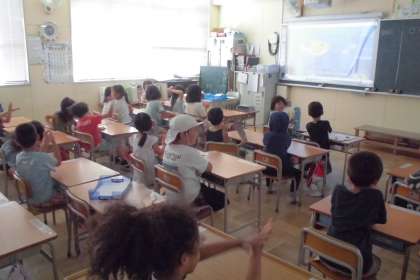 “Shark Family”の歌が流れると、みんな体を動かしながらノリノリで歌いだしました!