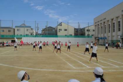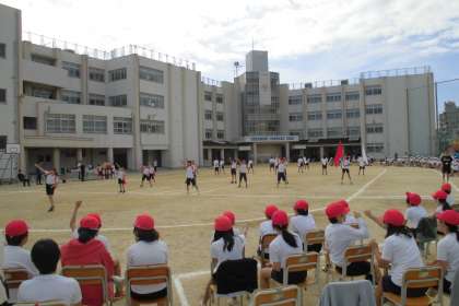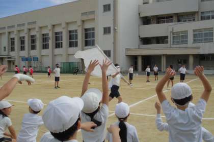 全校競技の玉入れの仕方と、応援団との応援の仕方を学習しました。