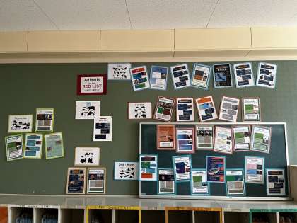 6年生が英語の学習で作成した「Animals on the RED LIST」のポスターです。