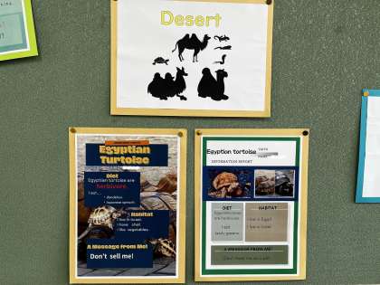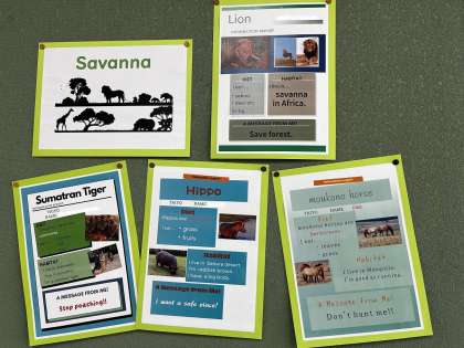 絶滅の危機に瀕している動物たちについて調べ、食性や生息地、体の特徴などを紹介して、動物たちから人間へのメッセージを考えました。