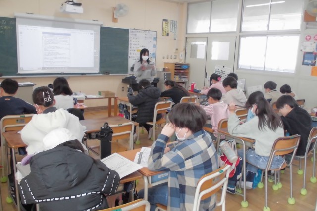 総合的読解力育成の学習で、未来の小学校で子どもたちはどんなふうに過ごしているのかについて読み取り、まとめました。