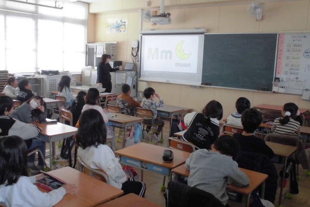 火曜日と木曜日の掃除の時間に行われている英語の短時間学習です。
