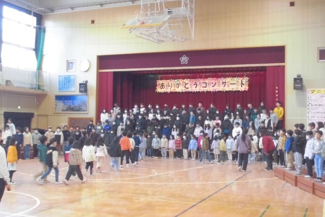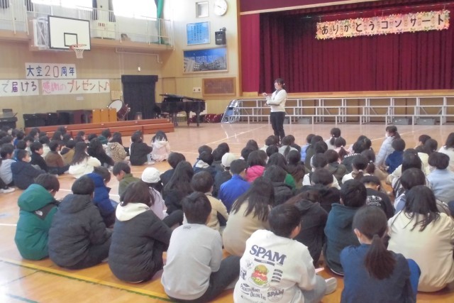 2月13日に開かれる「ありがとうコンサート」に向けて、全校児童で学習を行いました。
