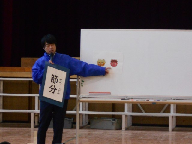 今日の朝会では校長先生から節分についてお話がありました。鬼を家から追い出すだけではなく、心の鬼も外に追い出すというお話でした。