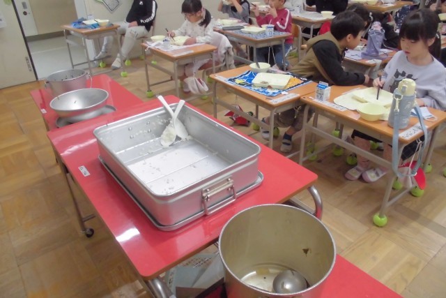 1年生の食缶はいつも通り空っぽです。