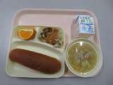 ・コッペパン ・牛乳 ・豚肉のカレー風味焼き ・コーンスープ ・カリフラワーのピ...