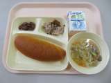 ・パンプキンパン ・牛乳 ・豚肉のバジル焼き ・鶏肉とキャベツのスープ ・うずら...