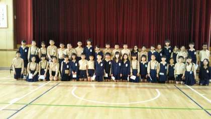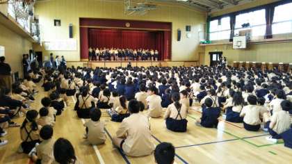 毎週木曜日の朝には全校児童集会を行っています。今朝は、初めてのペア学年での名刺交換会です。1・6年生、2・4年生、3・5年生がそれぞれペア学年です。年間を通して同じペアの友達で様々な活動を行います。
