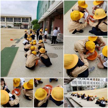 雑巾の絞り方の学習をしました。上手に絞れるコツを教えてもらった後、教えてもらった通りに絞ってみました。担任の先生にしっかり絞れたか確認してもらいました。みんなしっかり絞ることができるようになりました。