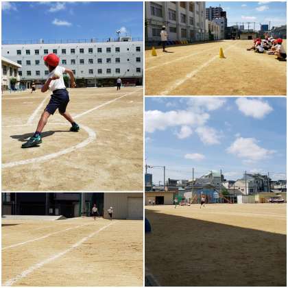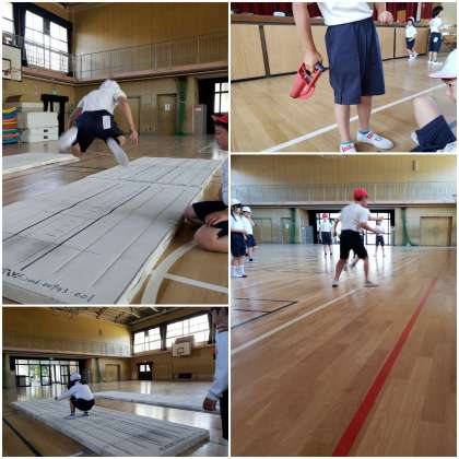 今週はスポーツテスト週間です。今日の2時間目は3年生が、ソフトボール投げ、50m走、反復横跳び、立ち幅跳び、握力に挑戦しました。
