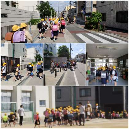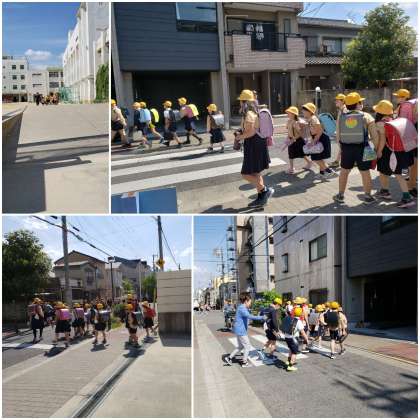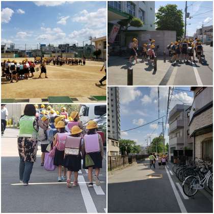 地域安全ボランティアの方に見守られ、地区別に分かれて集団下校をしました。
