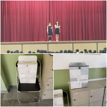 集会委員会のマネキンクイズの後、放送委員会から音楽アンケートの案内がありました。投票箱は職員室前に設置されてます。