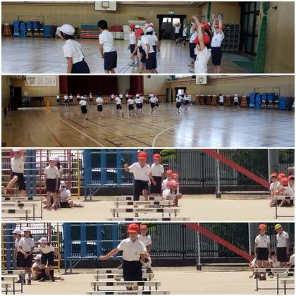 3時間目、運動場ではハードル走を行いました。ハードル走はハードル間を走るリズムが肝心です。担任の「0,1,2,3」の掛け声に合わせてリズムよく走り、ハードルを跨ぎ越す練習をしました。