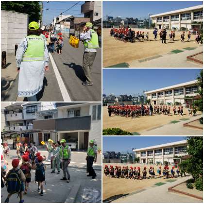 地域安全ボランティアの方々に見送られ、全員出席で元気に出発しました。
