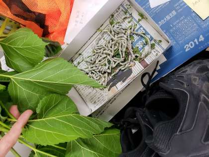 蚕もだいぶ大きくなりました。明日金曜日、お家に持って帰ります。土日用のえさ(桑の葉)も一緒に持ち帰りますので、しっかりと餌やりをしましょう。月曜日また学校へもってきて、学級でお世話をします。