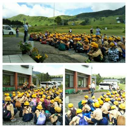 開所式を済ませ、避難訓練に続いて魚つかみです。