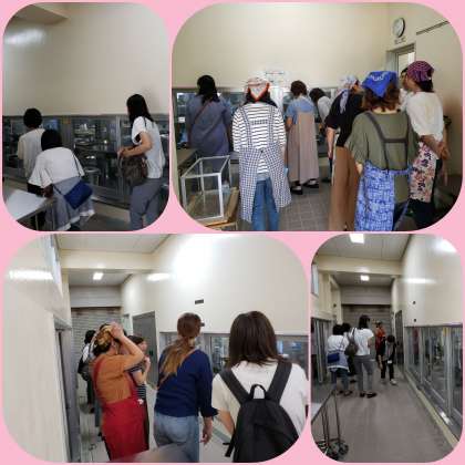 1年に1度の給食試食会です。まずは給食調理室の見学ツアーから始まりました。普段、じっくり見ることのない学校給食調理作業を窓の外から見学してもらいました。「思っていたより窯が大きい。」「作業の様子を見るのは初めて。」などの感想が上がっていました。