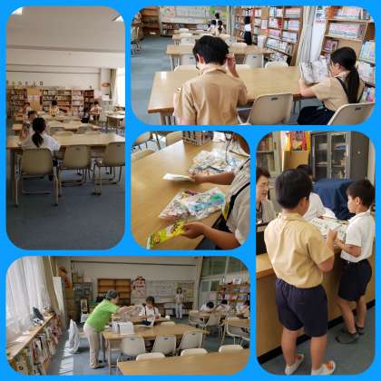 今日も図書館ボランティアの方々が本の貸し出しや本の修理をしてくださいました。読書カードがいっぱいになって、手作りの栞をもらっている子もいました。