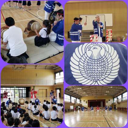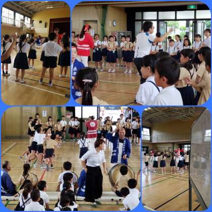 桑津神社だんじり保存会の方々に来ていただき、鐘や、太鼓のたたき方、龍の舞を教わりました。
