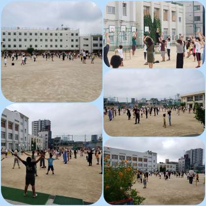 第2体操まですると、汗ばむ蒸し暑さでした。そんな中、準備やカード配り、示範体操をしてくださったPTAの皆さん、ありがとうございます。1週間よろしくお願いします。