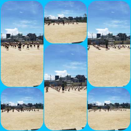 4時間目、6年生は運動場で組立体操のポジション確認をしました。