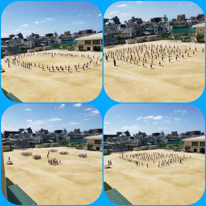 団体演技、それぞれの隊形での自分の立つ位置を確認しました。