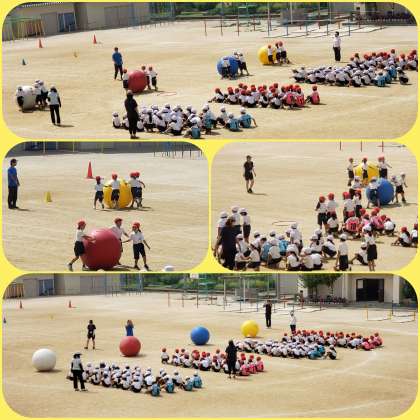 大玉ころがしの練習をしました。