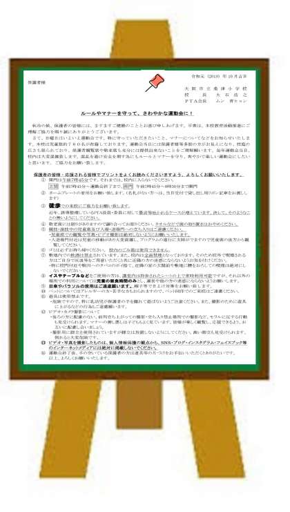 2学期に入って配布いたしました、運動会をご覧いただくにあたってのマナーやルールについての案内を今一度ご覧ください。