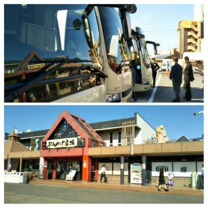 1回目のトイレ休憩。大内ドライブインに8:30に到着です。晴天です!!