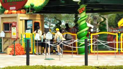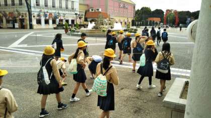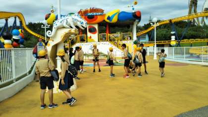 活動班でなかよくアトラクションを楽しんでいます。みんな笑顔です。好天に恵まれ、風爽やかです。