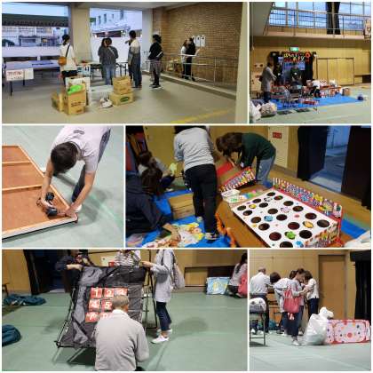 明日のPTAフェスティバルに向け16:00〜様々な準備を大勢の方々されました。ご苦労様です。ありがとうございます。