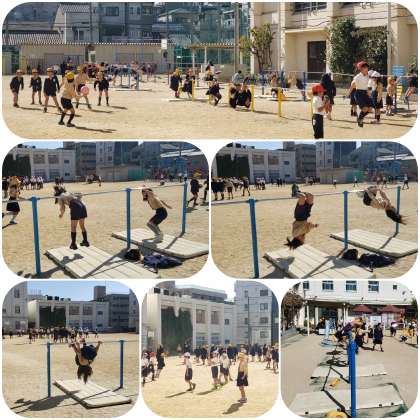 登校時は少し冷えて寒い朝でしたが、日中は日差しがあり暖かさも感じる中、今日もたくさんの児童が運動場で遊んでいます。寒くなるとやりづらくなる鉄棒遊びも今日はたくさんの子どもたちが、いろいろな技に挑戦していました。