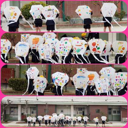 今日は風があったのでよく上がりました。校舎の3階の高さまで上げることができました。