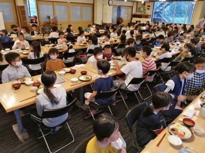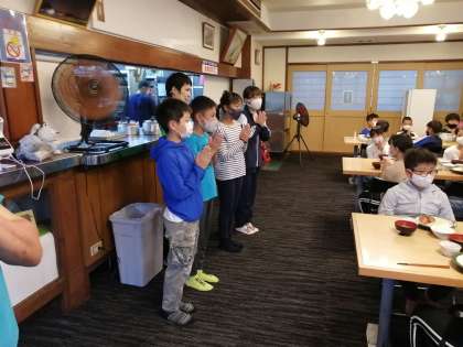 例年であればかも鍋なのですが、今年はコロナ対策として、個別配食のハンバーグです。いただきます。