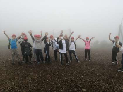 あいにくのガスのため頂上からの景色は臨めませんでしたが、雲の中を歩くというまたとない経験ができました。