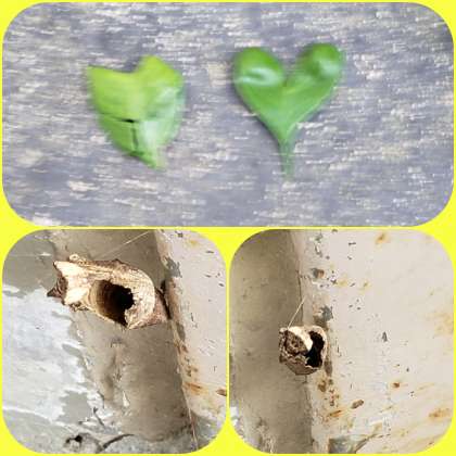 先日見つけたアゲハ蝶が羽化し、飛び立っていきました。近くのミカンの樹にハートの形をした葉を見つけました。