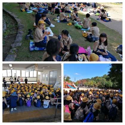 晴天のもと、4年生が錦織公園へ遠足に出かけました。秋晴れのすがすがしい空気を吸い、美味しいお弁当をいただいています。