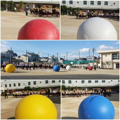 運動会の3年生種目 大玉ころがしをペア学年で楽しみました。
