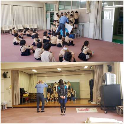 80周年記念行事まで、いよいよ1か月を切りました。記念品や記念誌作成のため、急ピッチで作業が進められています。PTA会長に何度も学校へ足をお運びいただき、順調に撮影が終わりました。お疲れ様でした。