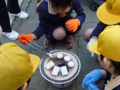 1月20日、3年生のみんなが、昔の暮らしの学習で、七輪を使ってお餅を焼いて食べました。炭をおこしてお餅を焼きながら、香ばしい香りと焼ける音を感じていました。昔の人は、五感を通して味わっていたんだなあと改めて思いました。