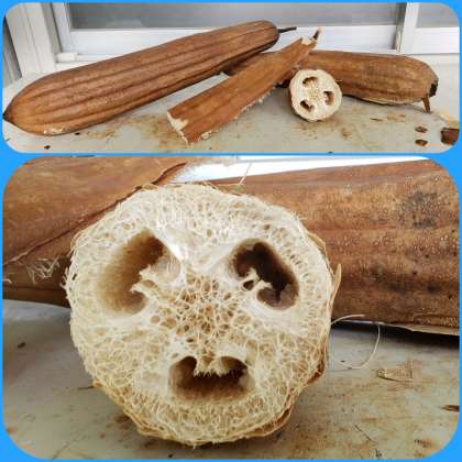 理科の学習で育てていたへちまを収穫し乾燥させました。植物の繊維がよくわかります。