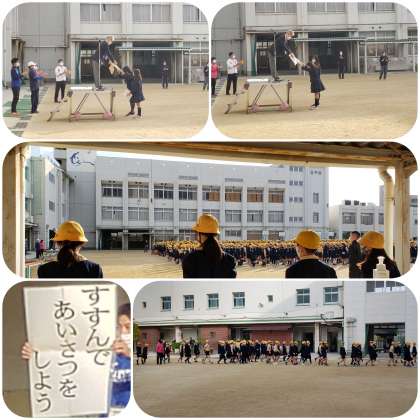 今日も小春日和です。気を緩めず手洗い、うがいの励行の話と大阪市児童絵画版画展で賞をもらった人の紹介が学校長よりありました、