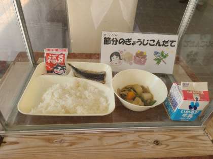 「ごはん、牛乳、いわしのしょうがじょうゆかけ、含め煮、いり大豆」でした。