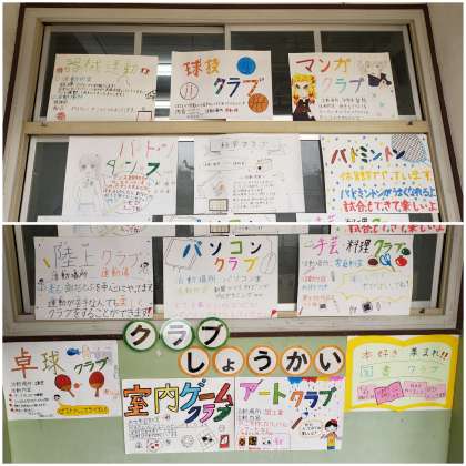 玄関横にクラブの紹介をするポスターが掲示されています。