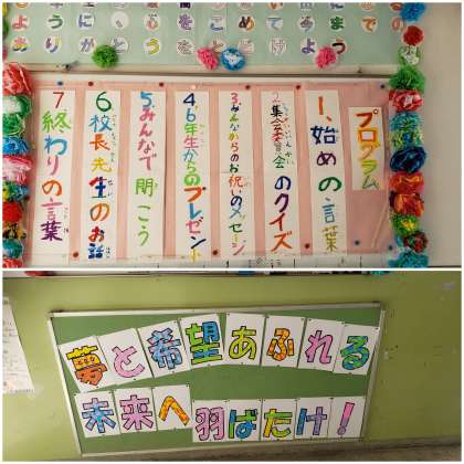 1部は各教室で開会セレモニーや各クラスからのビデオメッセージ視聴などを行いました。進行役は4,5年生の運営委員会の皆さんで、放送室からアナウンスをしました。