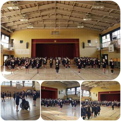 例年でしたら全校児童が講堂に集まって行う行事ですが、緊急事態宣言を受け、1部、2部に分散する形で行いました。