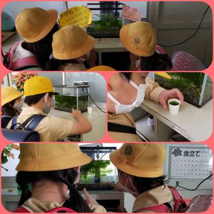 5年生の理科の学習でこの時期の鉄板教材が「メダカのたんじょう」です。水温が上がるこの時期に、メダカはたくさんの卵を水草に産み付けます。その卵が孵化するまでの様子や子メダカが成長していく様子を観察して、受け継がれる生命について学習します。今日の放課後も、各教室前に置かれた飼育水槽の前で観察をして帰る児童がいました。